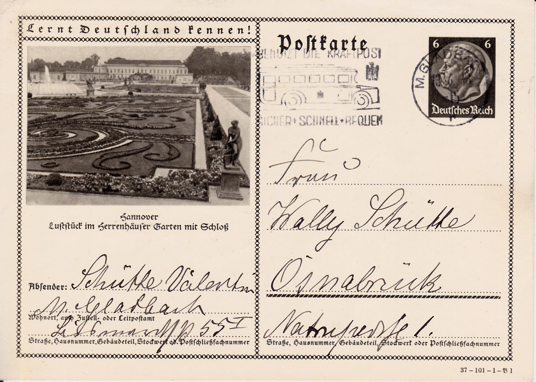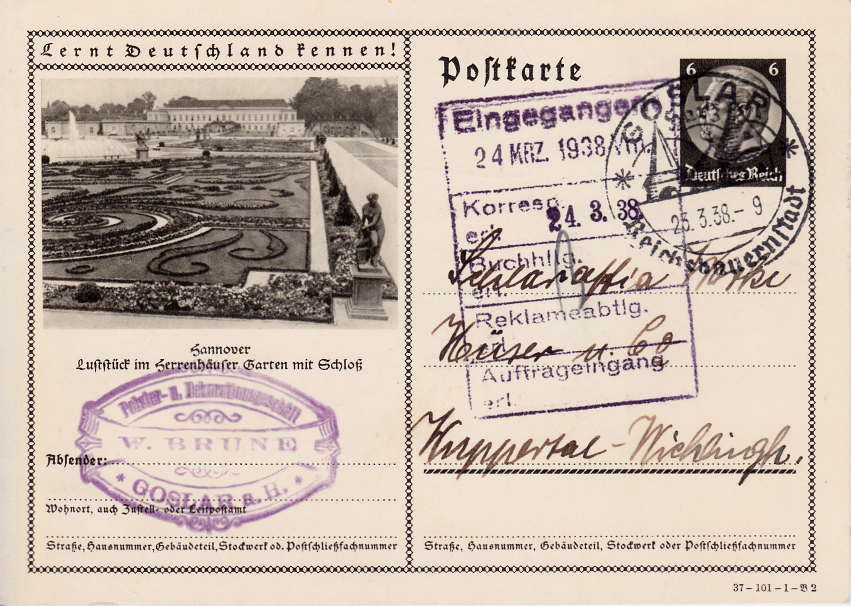 Es gibt die vorher gezeigte Karte auch mit einem anderen Druckvermerk als Karte der Serie 101 Bild 2.