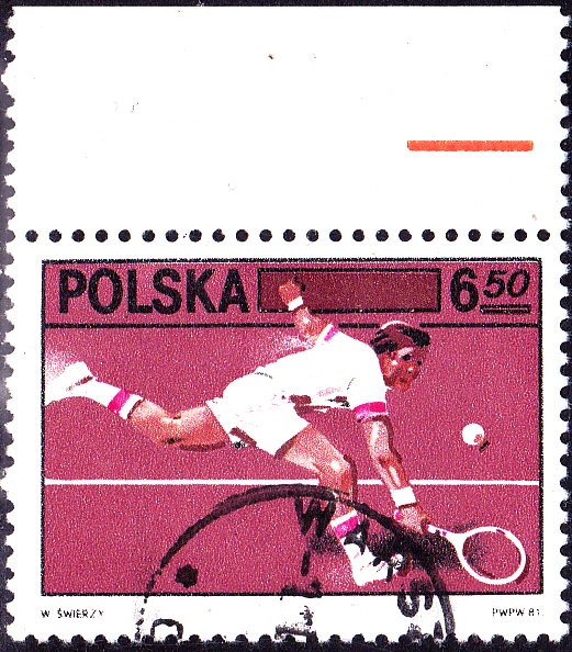 Zum Jubiläum "60 Jahre Polnischer Tennisverband" erschien in Polen diese Marke (MiNr 2756) mit einem Tennisspieler.