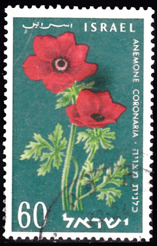 Auf dieser Marke aus Israel (MiNr 179) wird eine Kronen-Anemone (Anemone coronaria) vorgestellt.