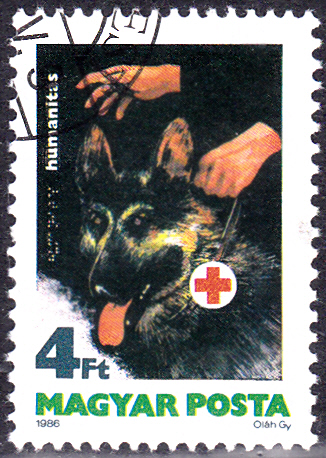 Diese Marke aus Österreich (MiNr 2232) aus Anlass "100 Jahre Blindenselbsthilfe in Österreich" bildet einen Deutschen Schäferhund bei seinem Dienst als Blindenhund ab.