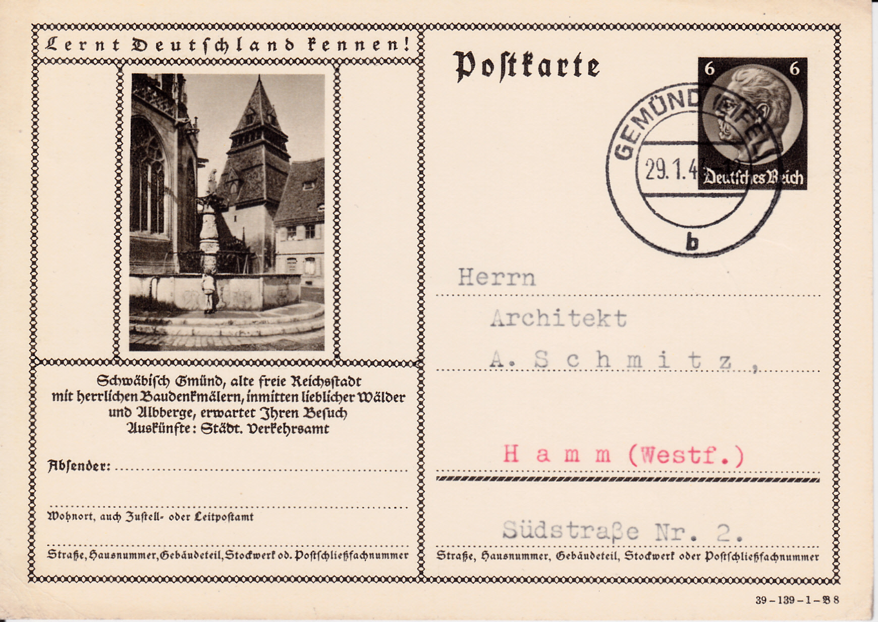 Und wieder gibt es dieses Motiv auch noch auf einer zweiten Karte 1939 (Serie 139 Bild 2).