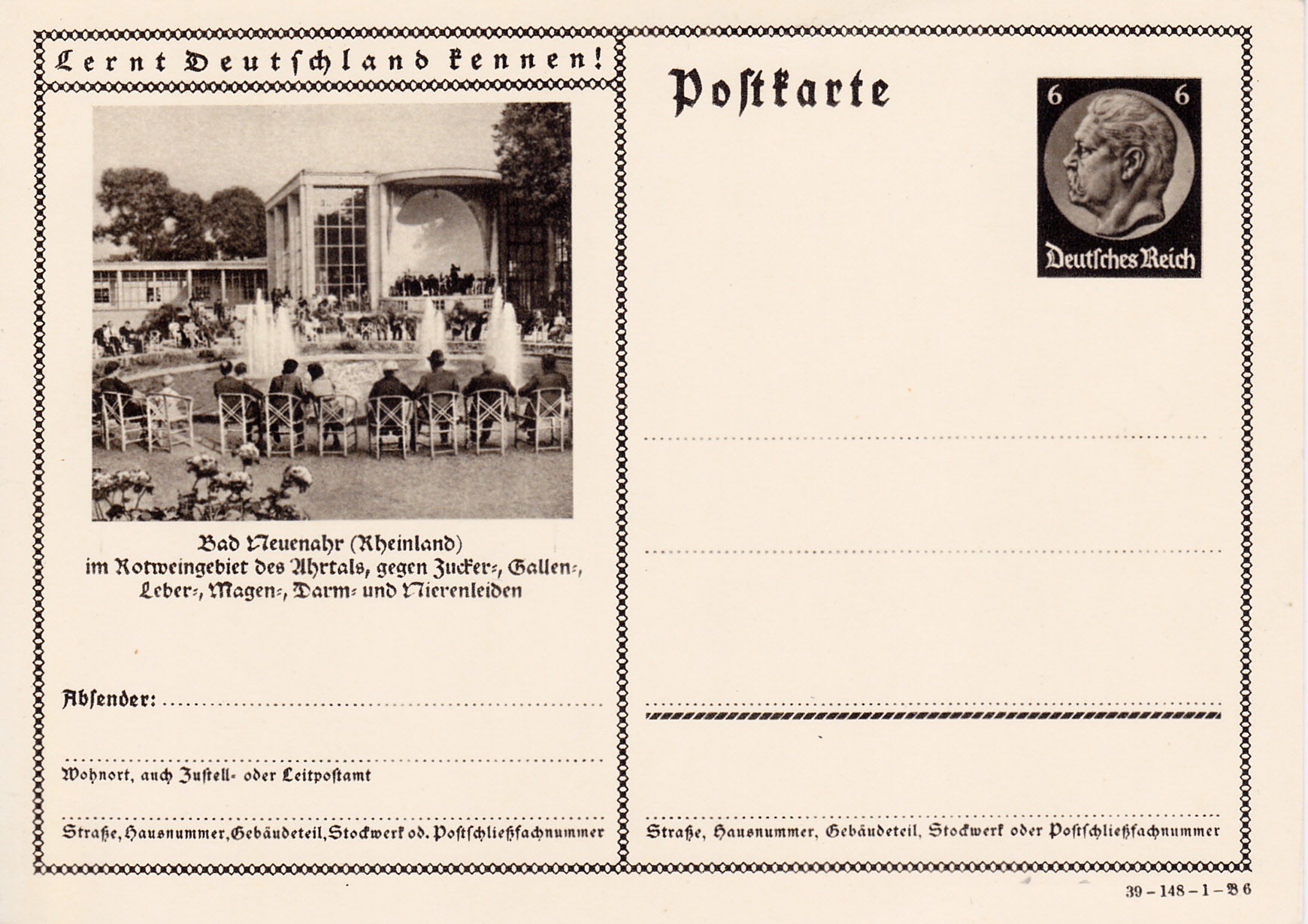 Bad Neuenahr zeigt 1939 auf dieser Karte (Serie 148 Bild 6) ein ähnliches Foto von einem Konzert im Kurpark Bad Neuenahr wie in der Serie 1937.