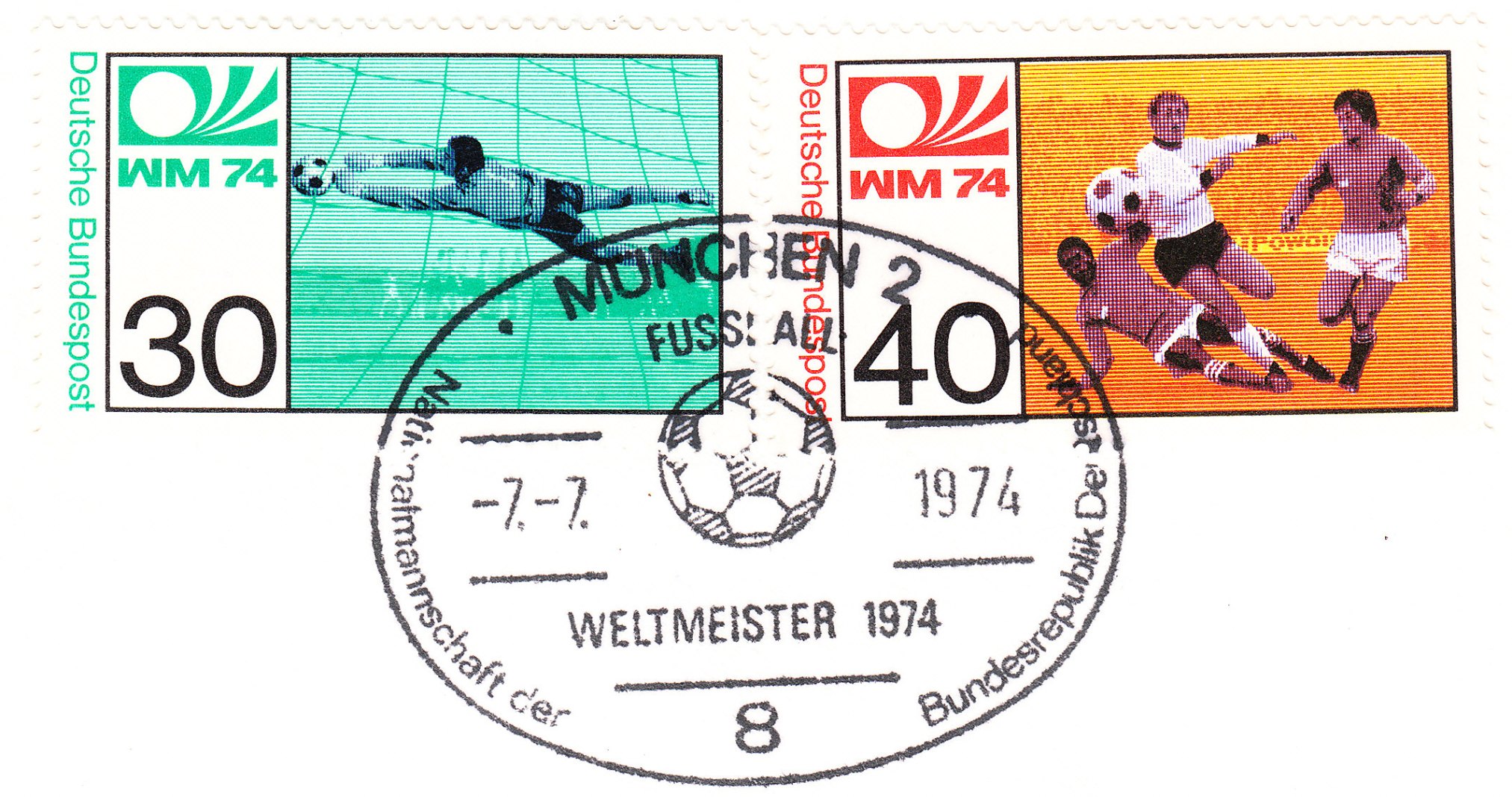 Dieser Beleg wurde am 18.06.1974 in Berlin mit dem zum Markenmotiv passenden Handwerbestempel entwertet: