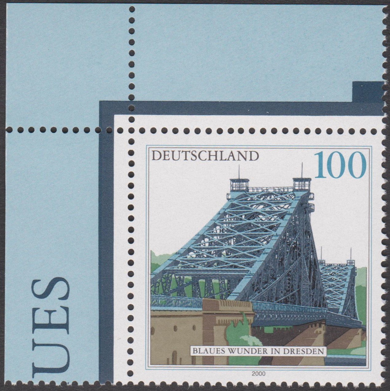 "Blaues Wunder" in Dresden, Bund MiNr. 2109, Eckrand oben links sowie unten rechts postfrisch: