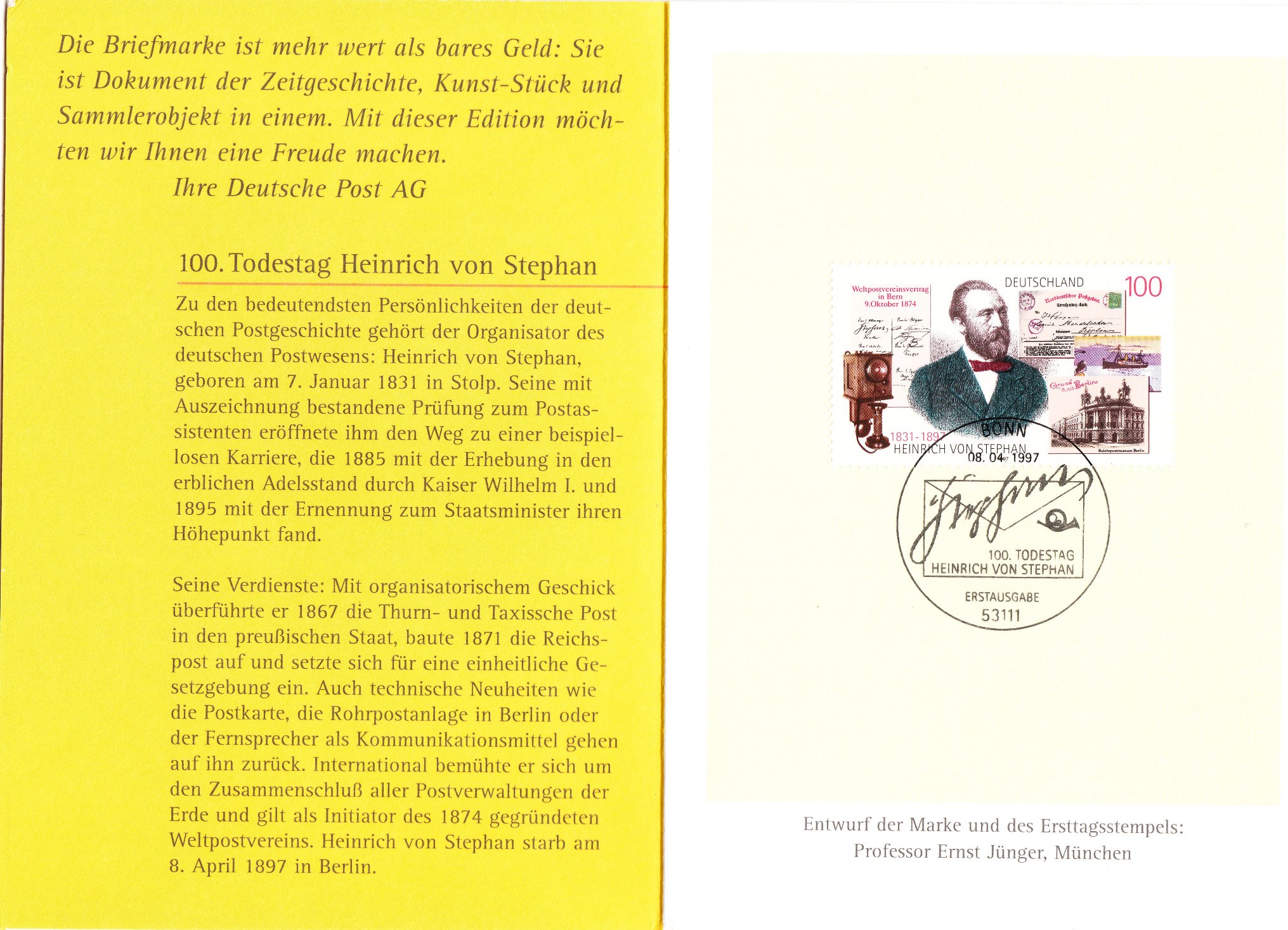 Hier als erstes Beispiel das Exemplar mit MiNr. 1912 Heinrich von Stephan: