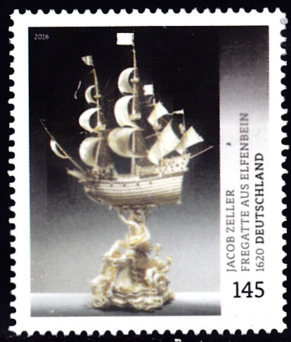 In der Serie "Schätze aus deutschen Museen" hat die Deutsche Post eine Marke (MiNr 3228) mit der Großen Fregatte aus Elfenbein von Jacob Zeller verausgabt.