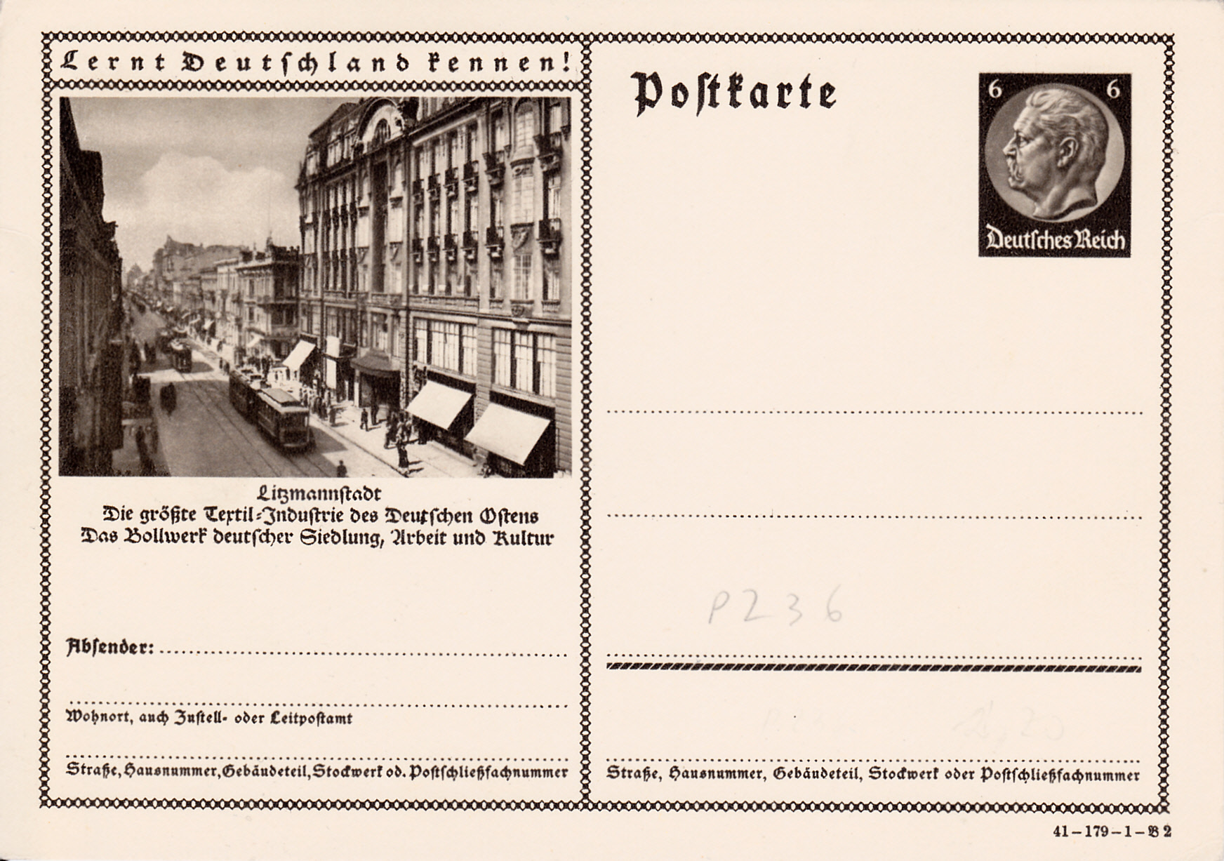 Bildpostkarten Hindenburg P 236 Ausgabe 1941