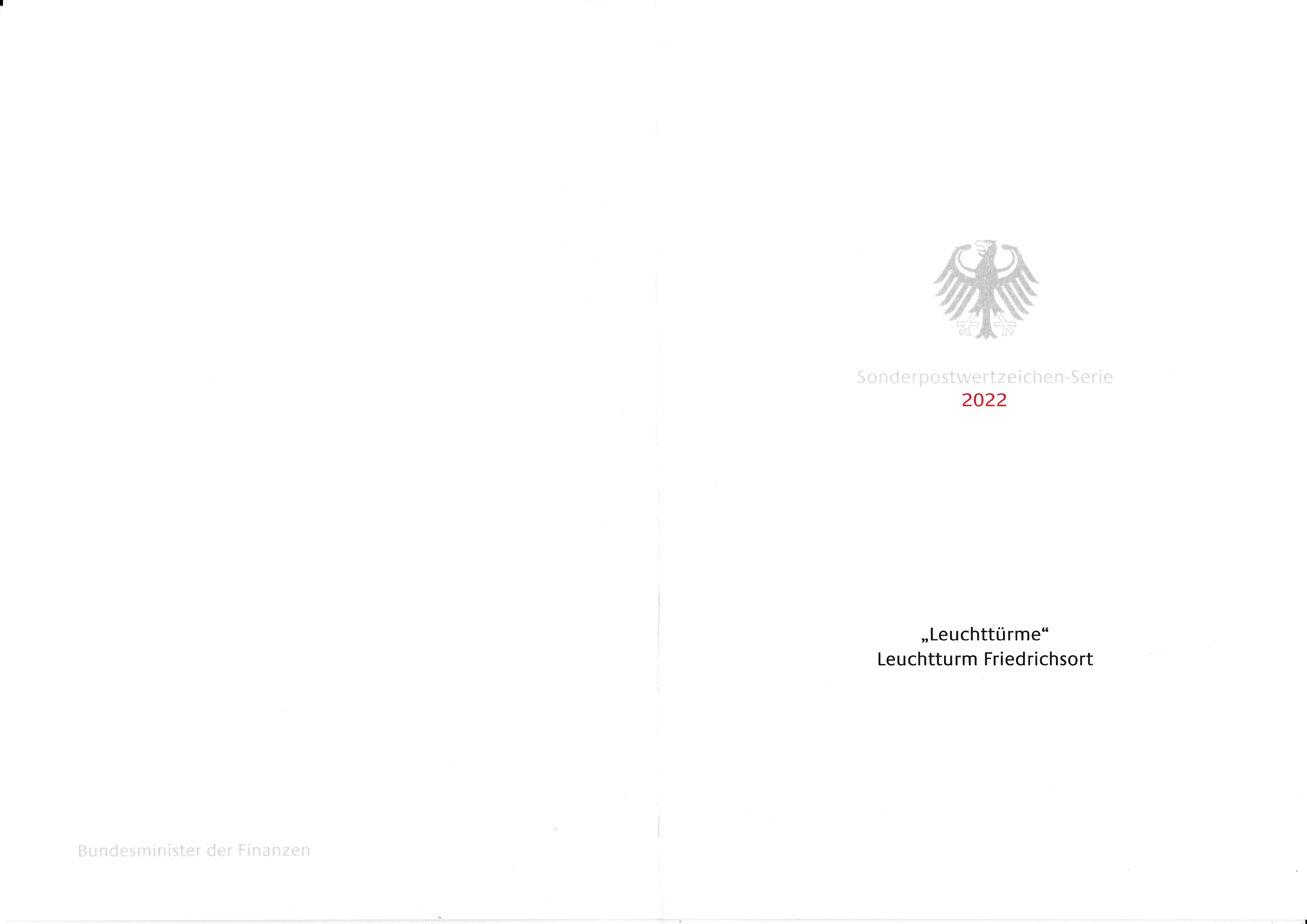 Ministerkarte des Bundesministers für Finanzen mit zwei Marken der Serie "Leuchttürme" (MiNr 3696) mit dem Motiv "Leuchtturm Friedrichsort" und den beiden Ersttagsonderstempel Bonn und Berlin.