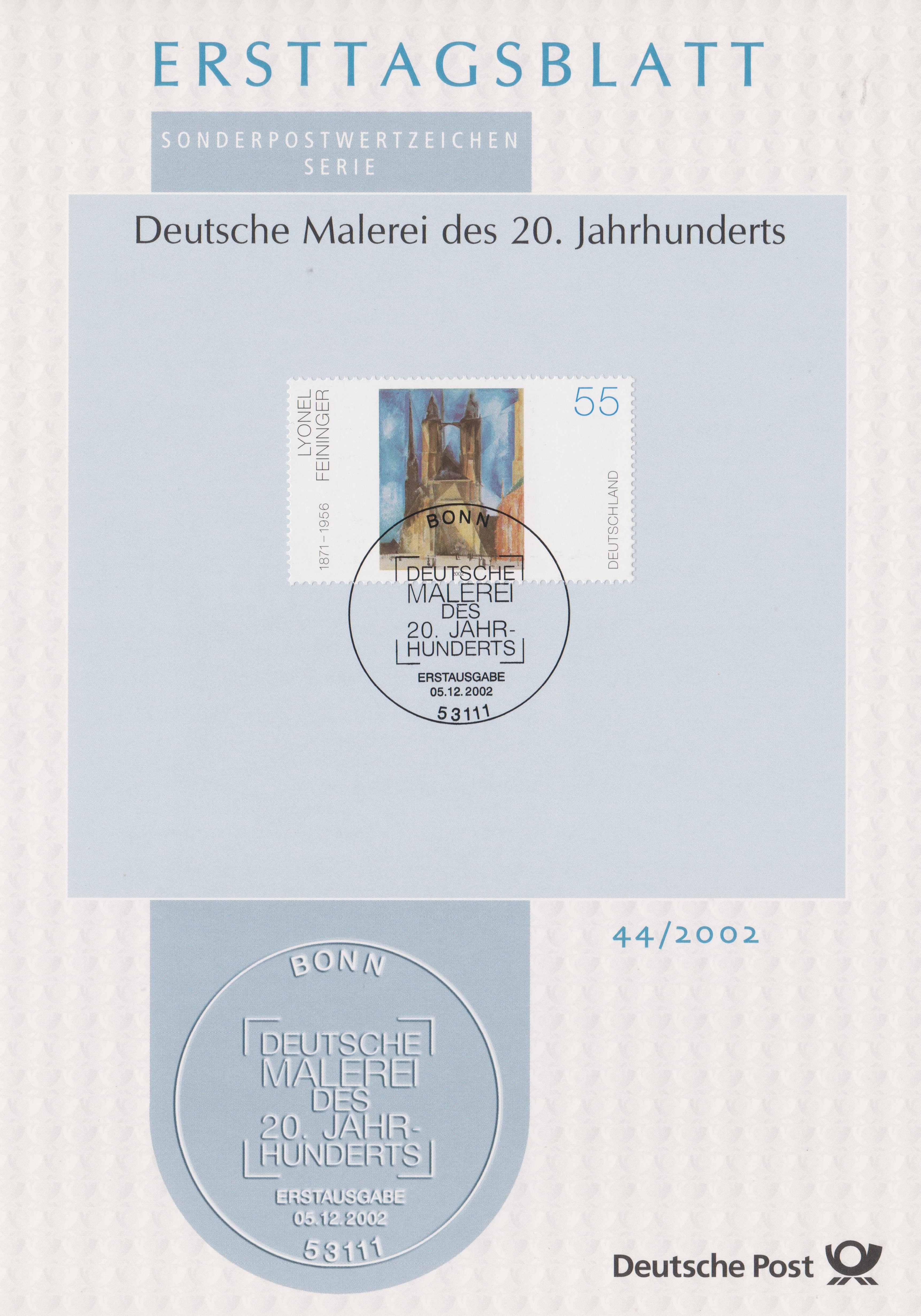 ETB 44/2002 zeigt Bund MiNr. 2294 mit dem Gemälde von Lyonel Feininger "Marktkirche von Halle":