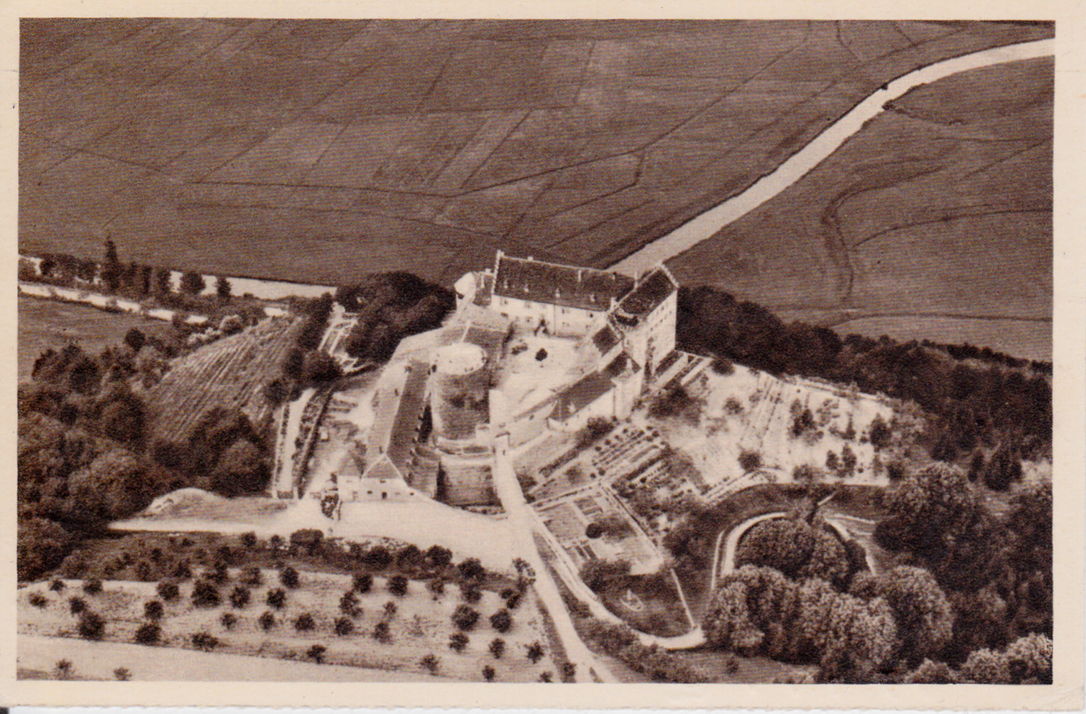 Das Schloss in Weimar von oben zeigt uns die Karte mit Bild 156.