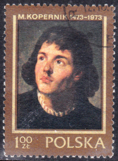 Auf einer Marke aus Polen (MiNr 2232) zum 500. Geburtstag von Nikolaus Kopernikus ist ein Porträt von Kopernikus nach einer