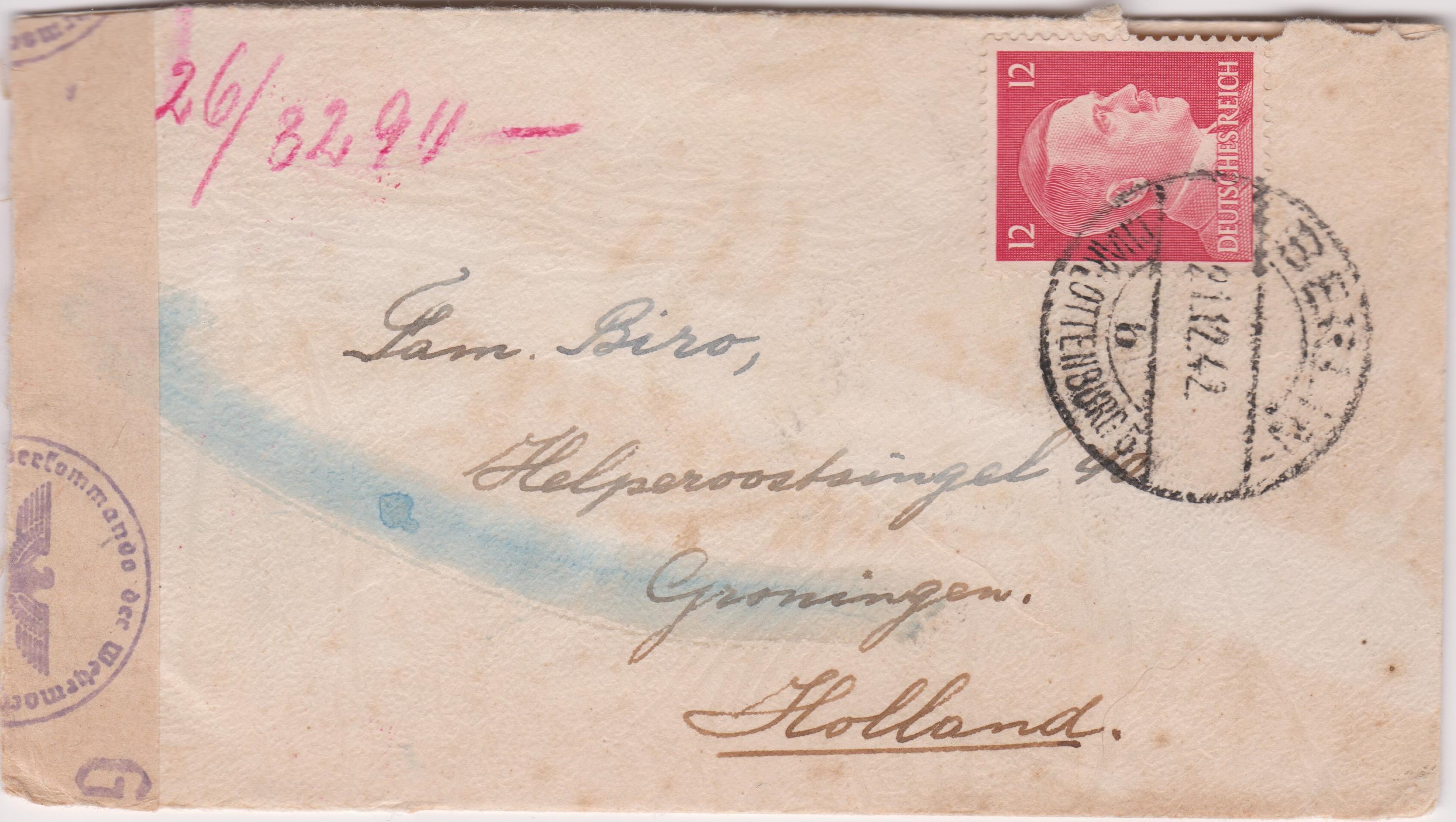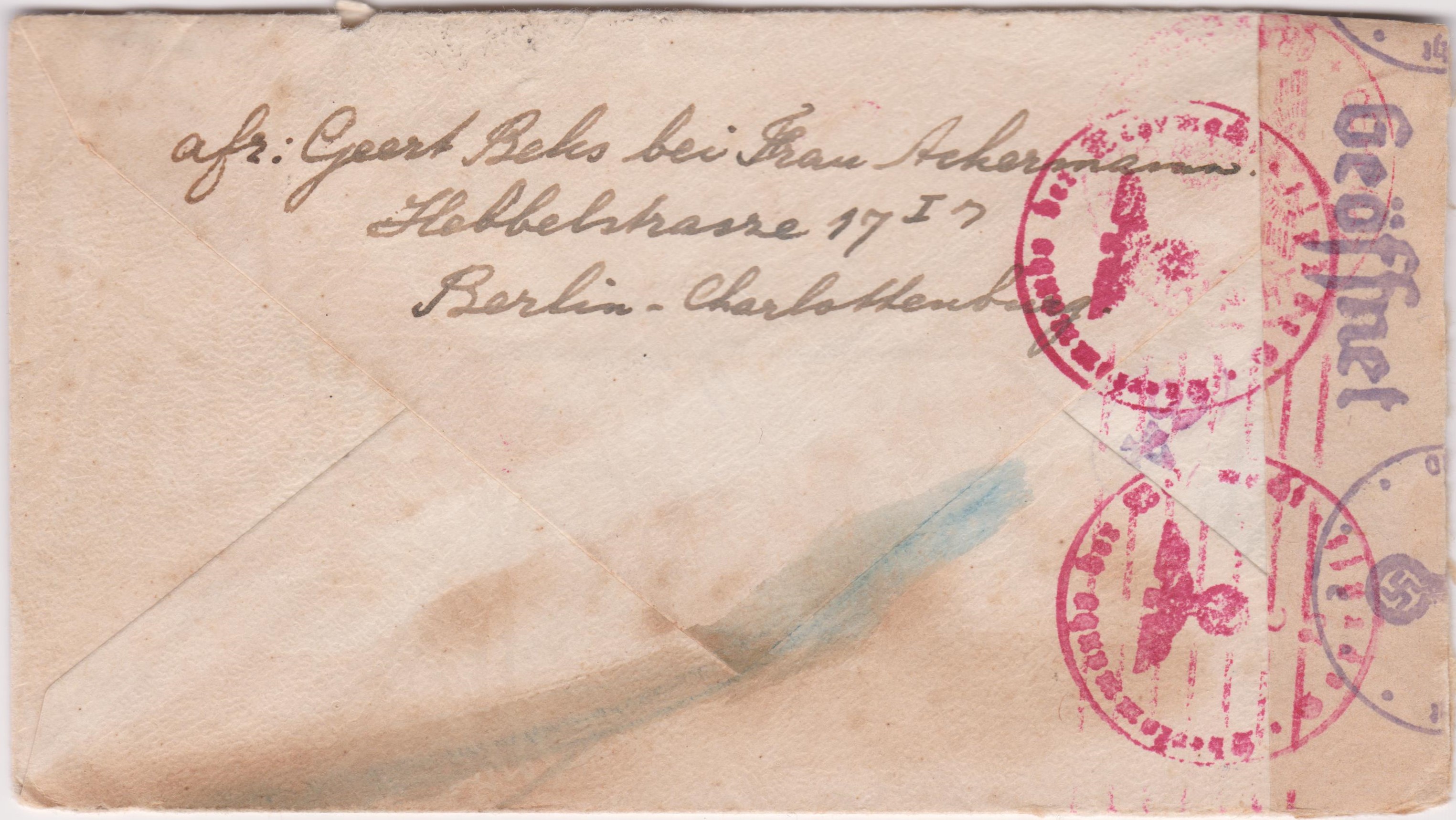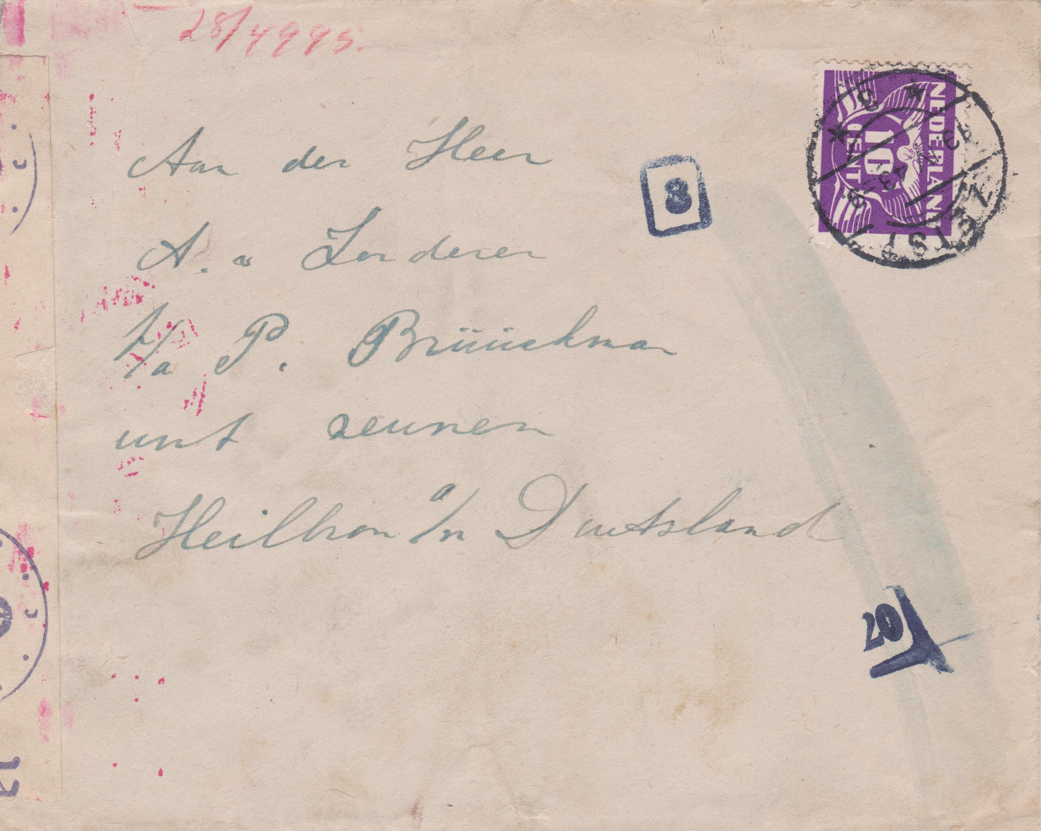 Dieses "BE" in Rot im Adressfeld stammt von der Eingangssortierung mit Hilfe einer TRANSORMA in Utrecht in Holland: