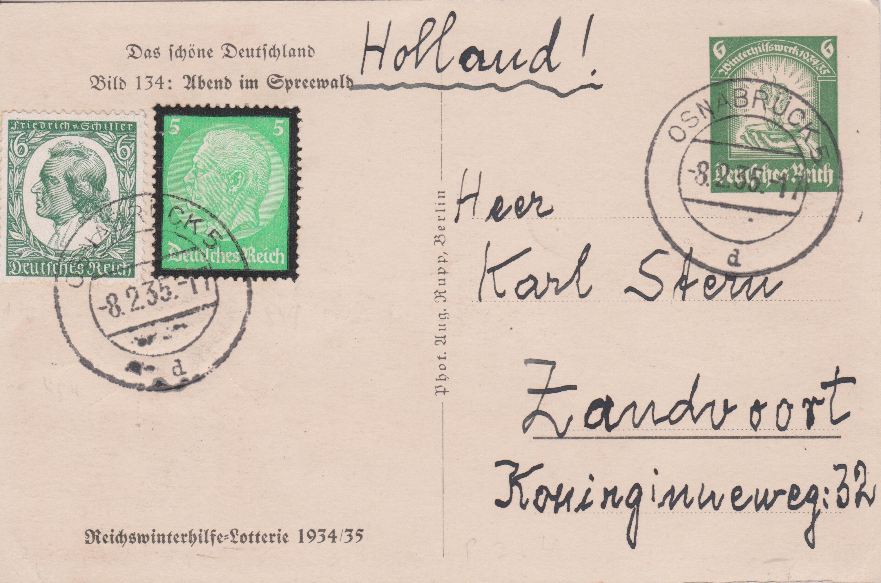 Diese Ganzsache Deutsches Reich P 254 Bild 134 wurde mit einer Zusatzfrankatur versehen und nach "Zandvoort Holland" geschickt: