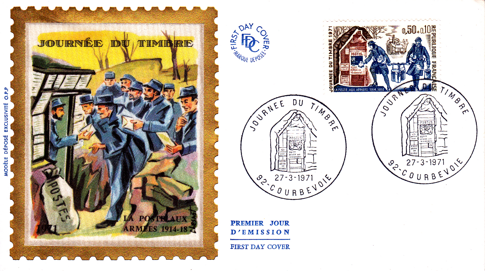 Zum Tag der Briefmarke 1971 ist in Frankreich eine Marke (MiNr 1743) mit einer Darstellung zum Thema Feldpost während des 1. Weltkrieges 1914–1918.