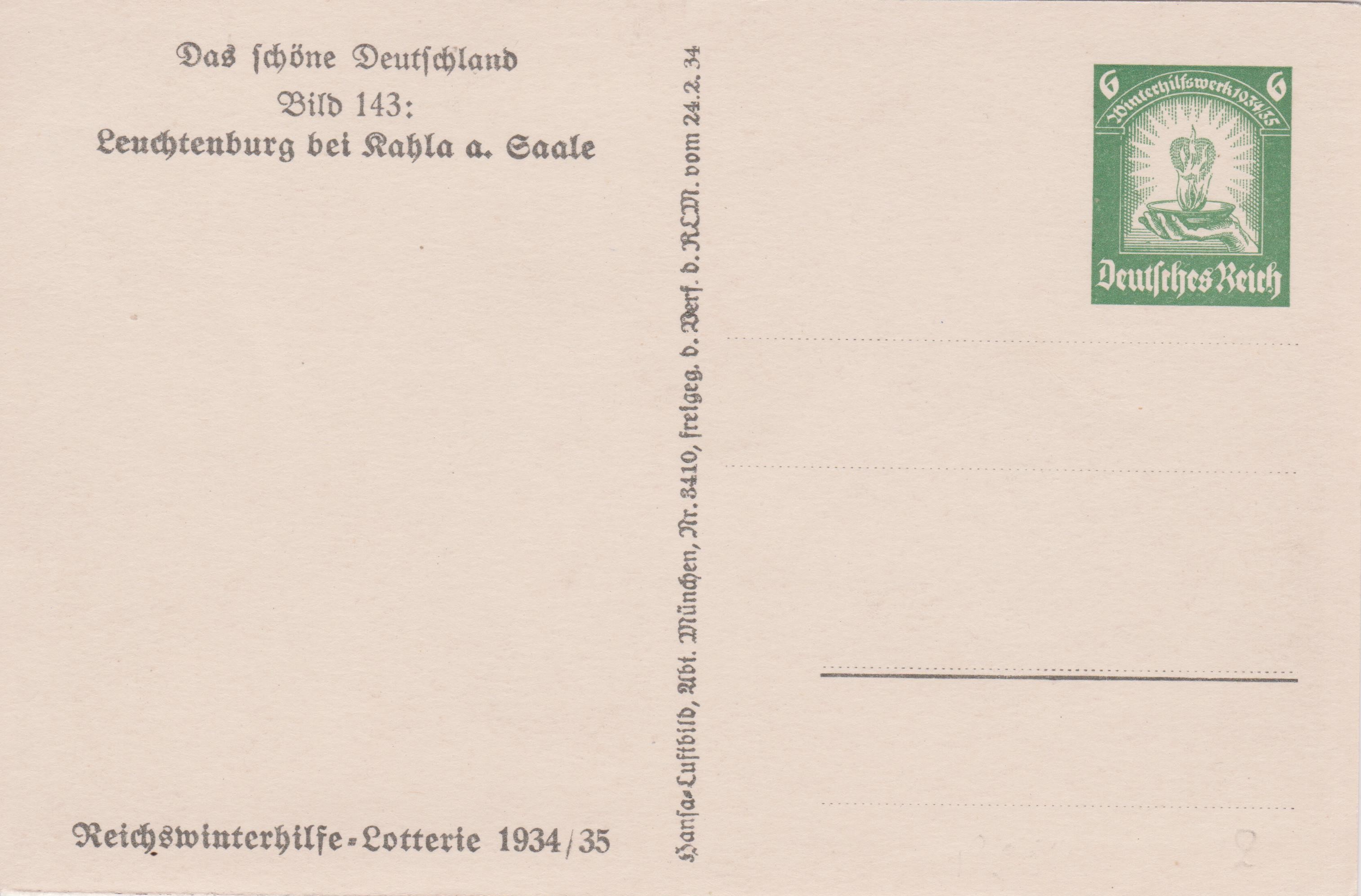 Ganzsache Deutsches Reich P 254 Bild 143 zeigt die "Leuchtenburg bei Kahla a. Saale" ungebrauchte: