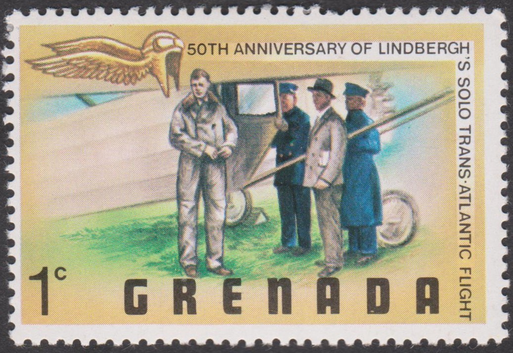 Grenada MiNr. 873 erschien am 13.02.1978 zum 50. Jahrestag des 1. Transatlantikfluges von Charls Lindbergh und zeigt Charles Lindberg vor seiner "Spirit of St. Louis":