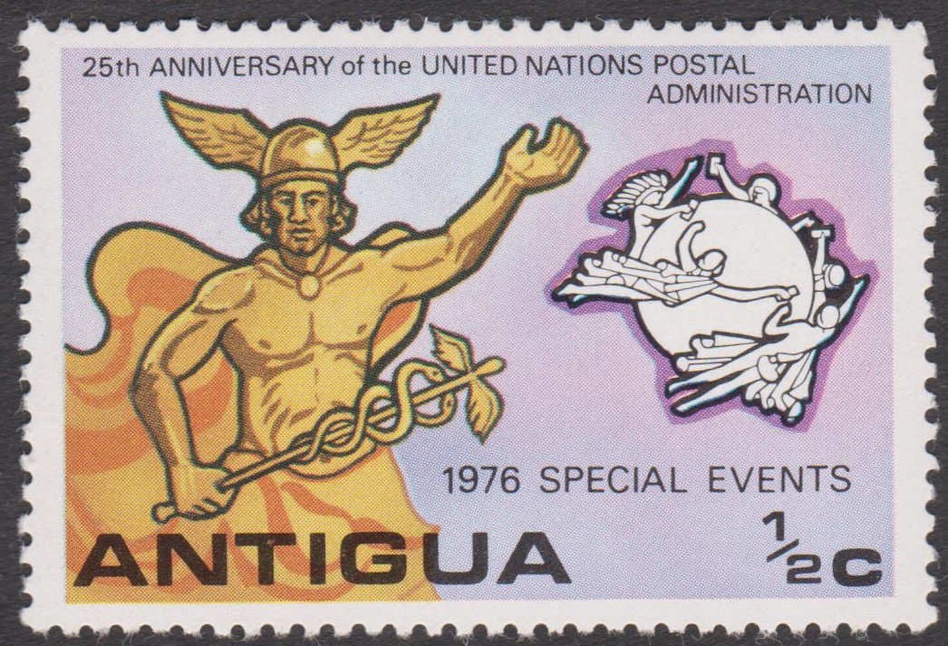 Antigua MiNr. 447 erschien am 28.12.1976 aus Anlaß "25 Jahre Postverwaltung der UNO":
