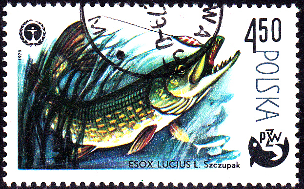 Auf der letzten Marke (MiNr 2623) dieser Serie aus Polen sehen wir einen Flusswels (Silurus glanis).