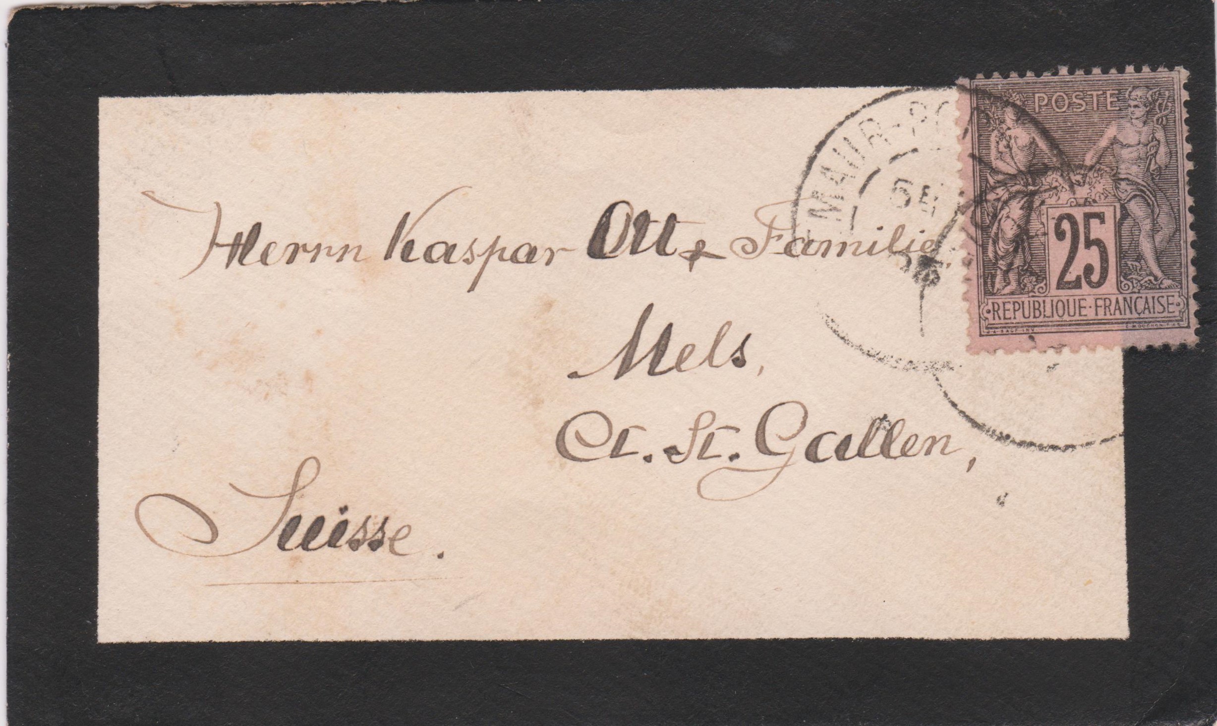 Trauerbrief im Kleinformat 1895 aus Frankreich nach St. Gallen in der Schweiz glaufen: