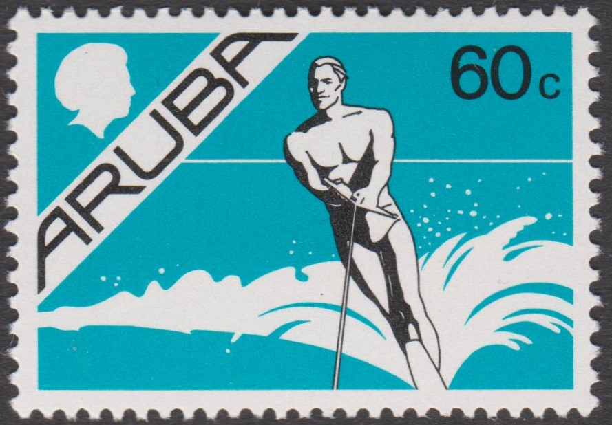 Dieses Postwertzeichen zeigt als Motiv einen Wasserskiläufer.