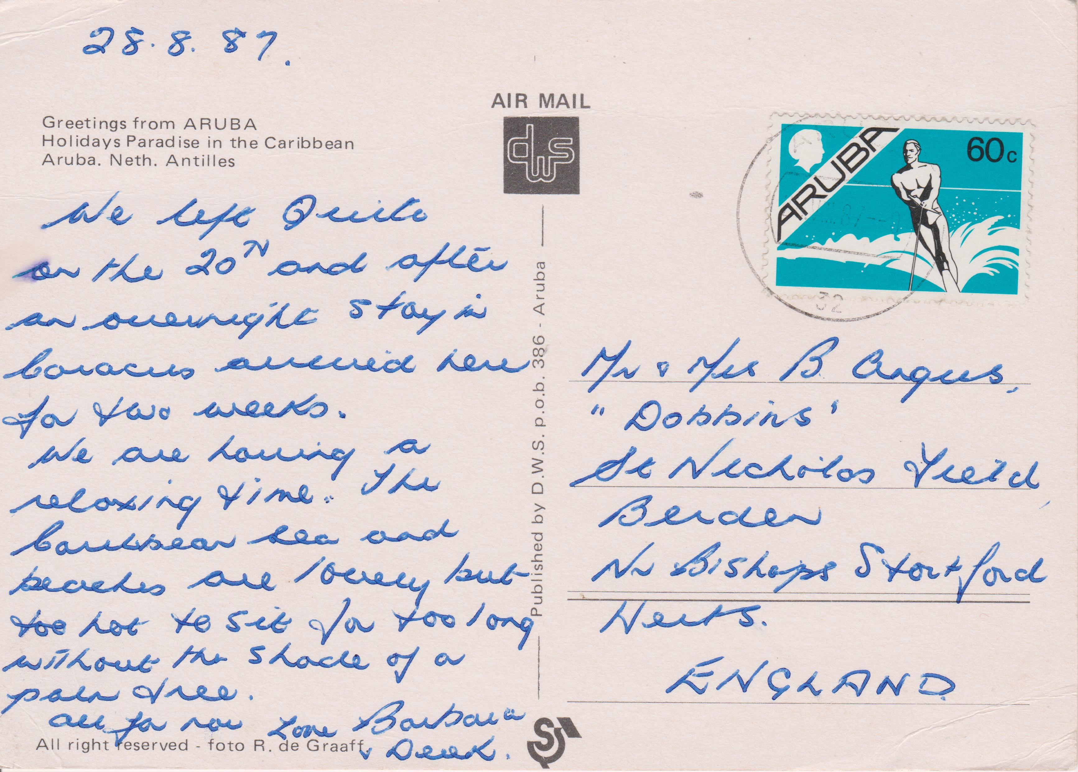 Einzelfrankatur Aruba MiNr. 9 auf Postkarte nach England: