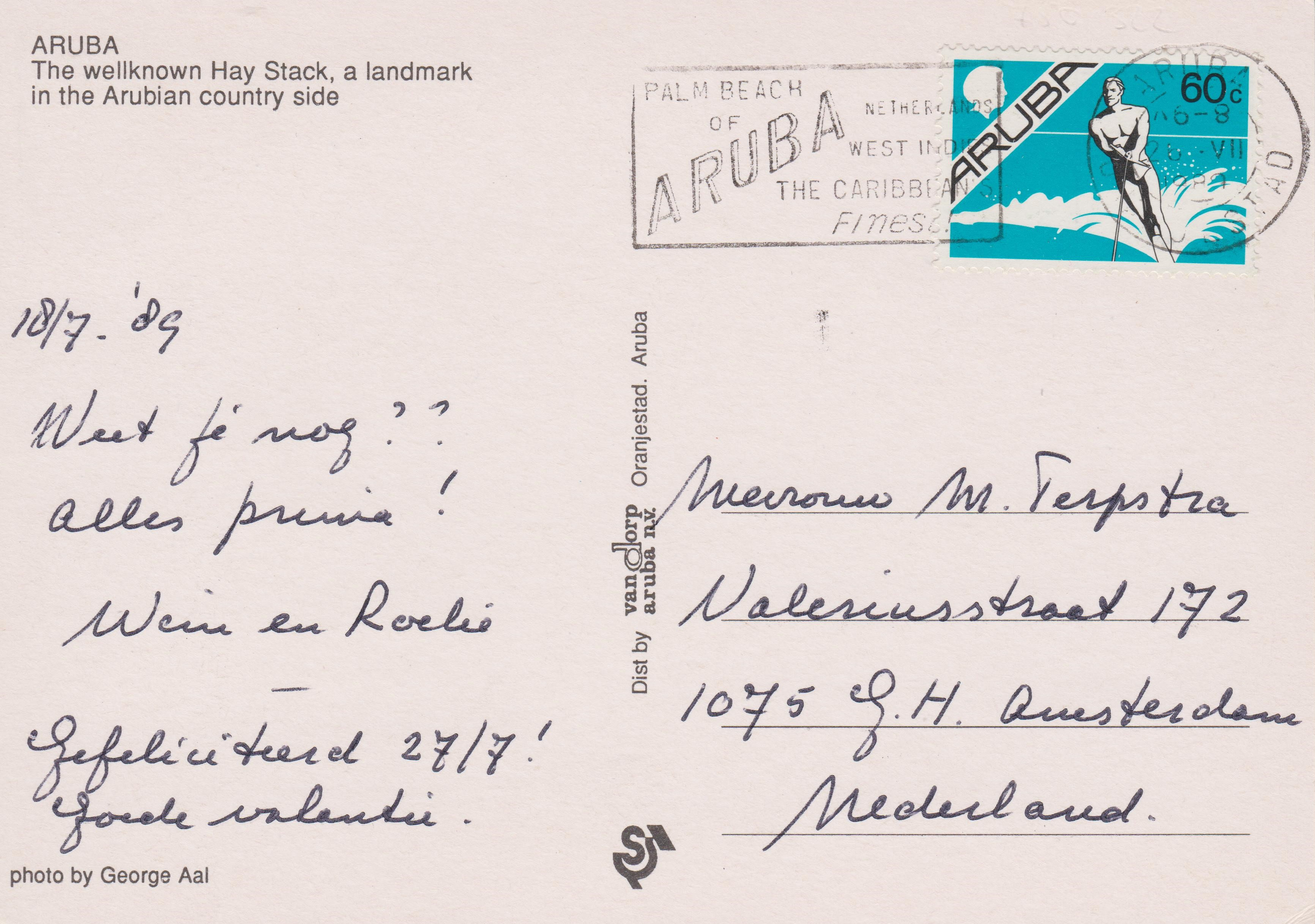 Einzelfrankatur Aruba MiNr. 9 auf Postkarte in die Niederlande: