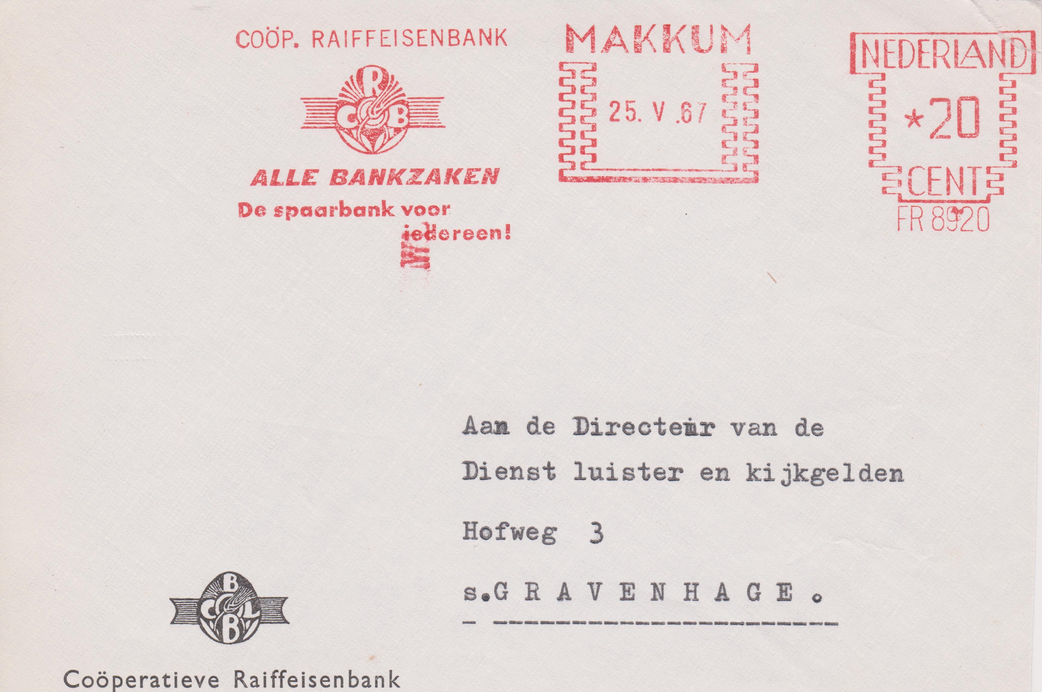 Ausschnitt aus einem Brief mit einem Absenderfreistempel vom 10.05.1967 aus ROORDAHUIZUM nach 's-GRAVENHAGE:
