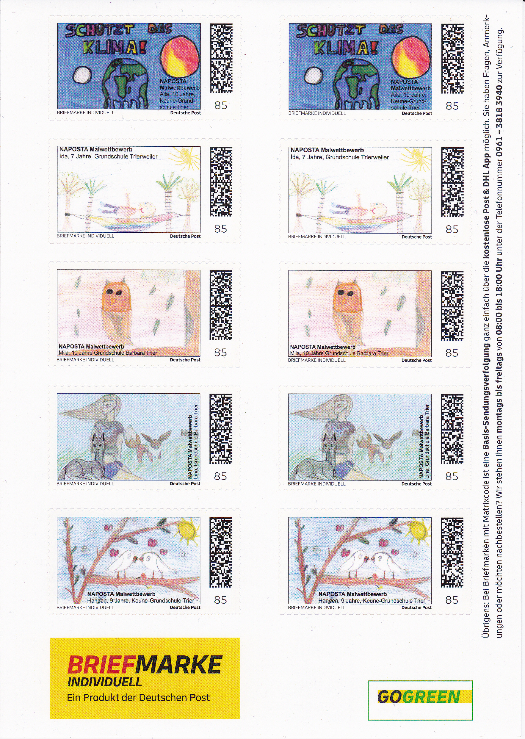Diese fünf Marken wurden jeweils zweifach in einem Zehnerbogen gedruckt. So sieht der komplette Bogen aus.