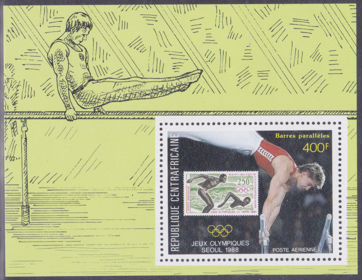 Auch in Mauretanien gehört zur Ausgabe ein Block (MiNr Block 71 mit Marke MiNr 930). Die Marke des Blocks zeugt ebenfalls einen Speerwerfer.