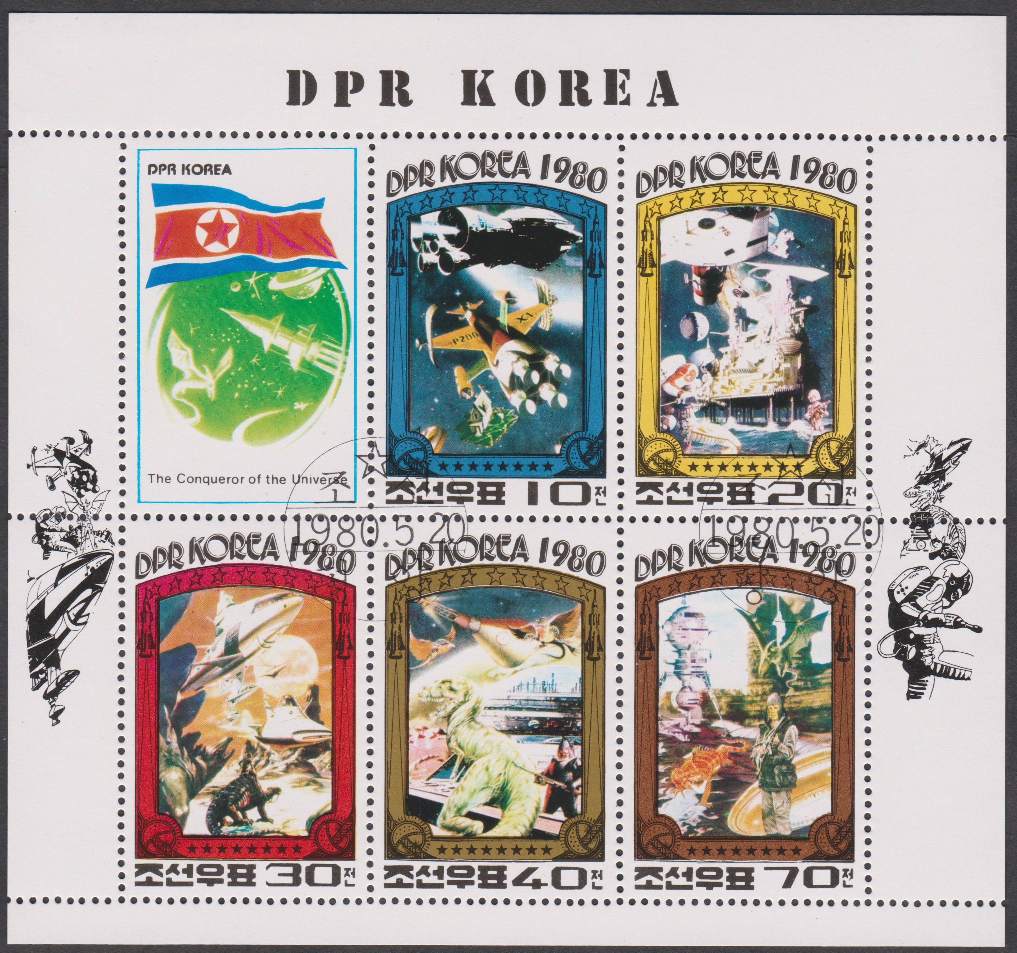 Nordkorea MiNr. 2003 - 2007 zeigen Bilder über die Zukunft der Raumfahrt: