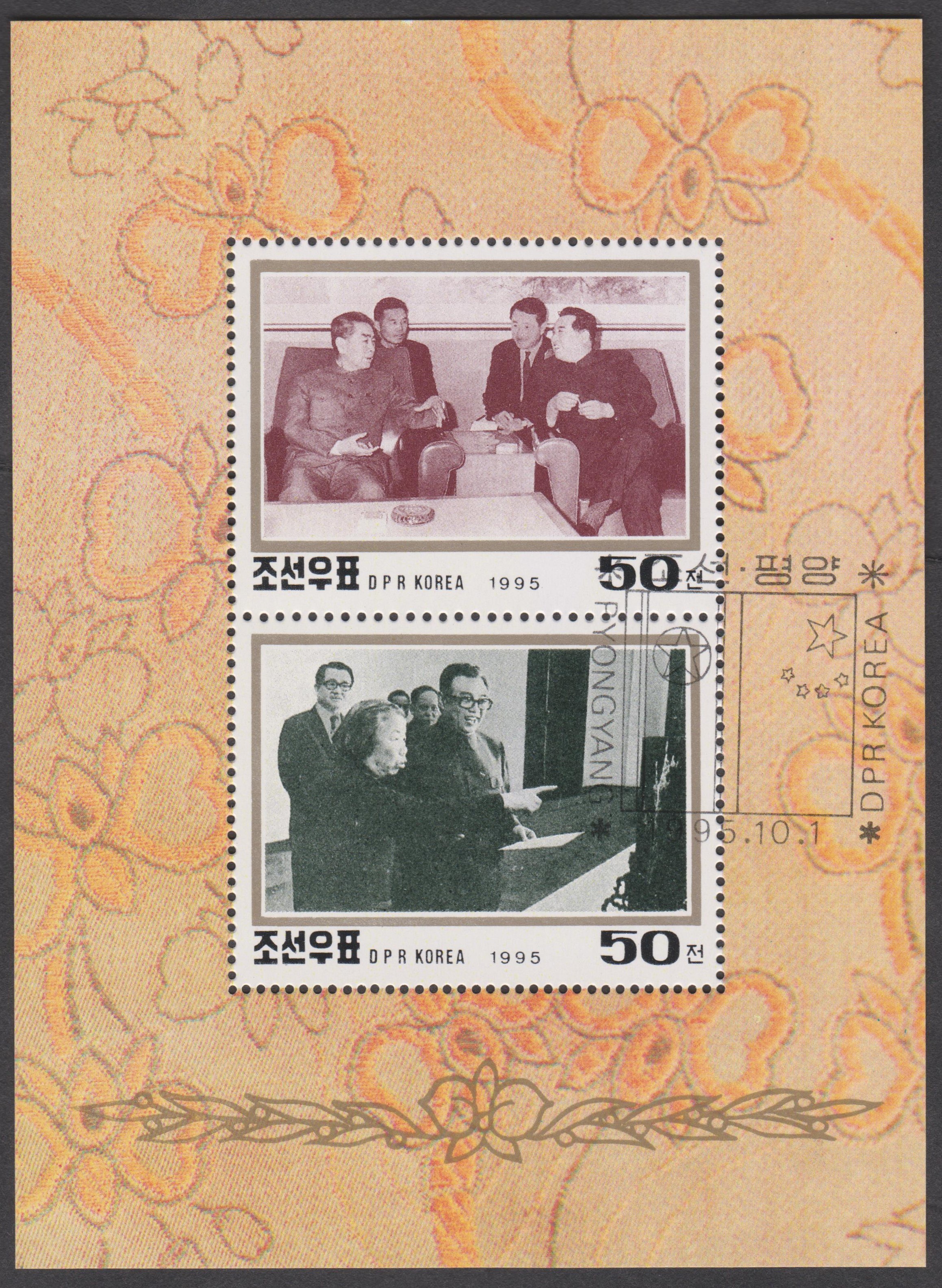Nordkorea MiNr. 3756 - 3757 erschienen am 01.10.1995 zum Nationalfeiertag der Volksrepublik China und wurden zusammenhängend im Kleinbogen gedruckt: