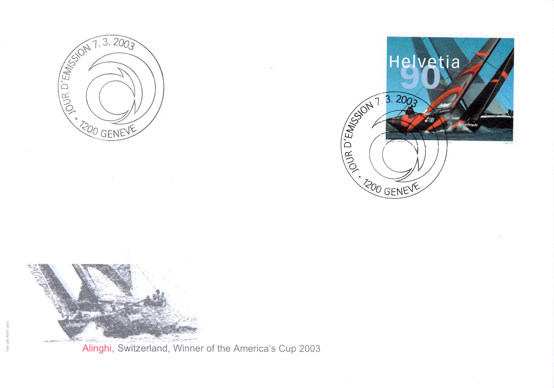 Zum Gewinn der Segelregatta um den America’s Cup 2003 durch die Schweizer Segeljacht "Alinghi" ist in der Schweiz diese Marke (MiNr 1831) erschienen.
