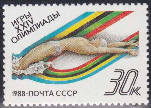 Eine Blockausgabe der Sowjetunion (MiNr Block 202 mit Marke MiNr 5845) vervollständigt die Ausgabe zu den Sommerspielen 1988. Auf der Marke ist ein Fußballspieler zu sehen.