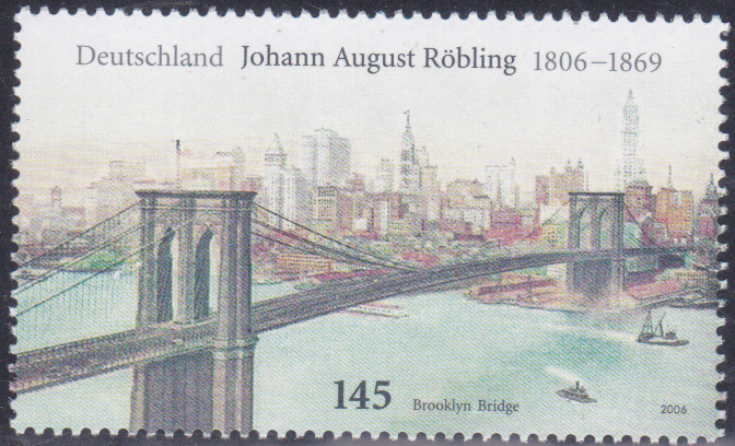 Zum 200. Geburtstag von Johann August Röbling erschien diese Marke (MiNr 2544) mit der Brooklyn Bridge über den East River in New York, erbaut 1869-1883 nach Plänen von J. A. Röbling.