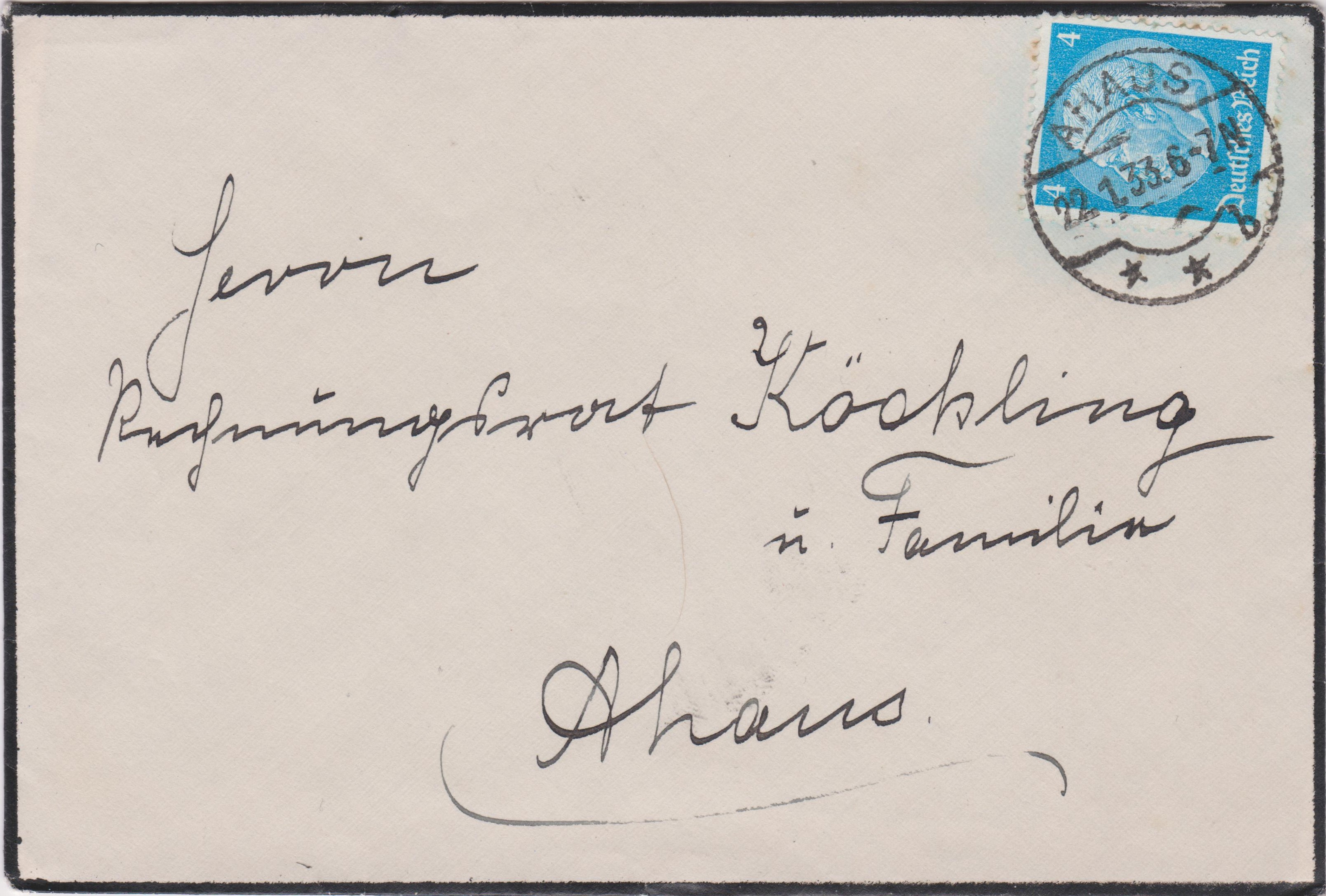 Trauersendungen, im Januar 1933 freigemacht per Einzelfrankatur 4 Pf Hindenburg-Medaillon: