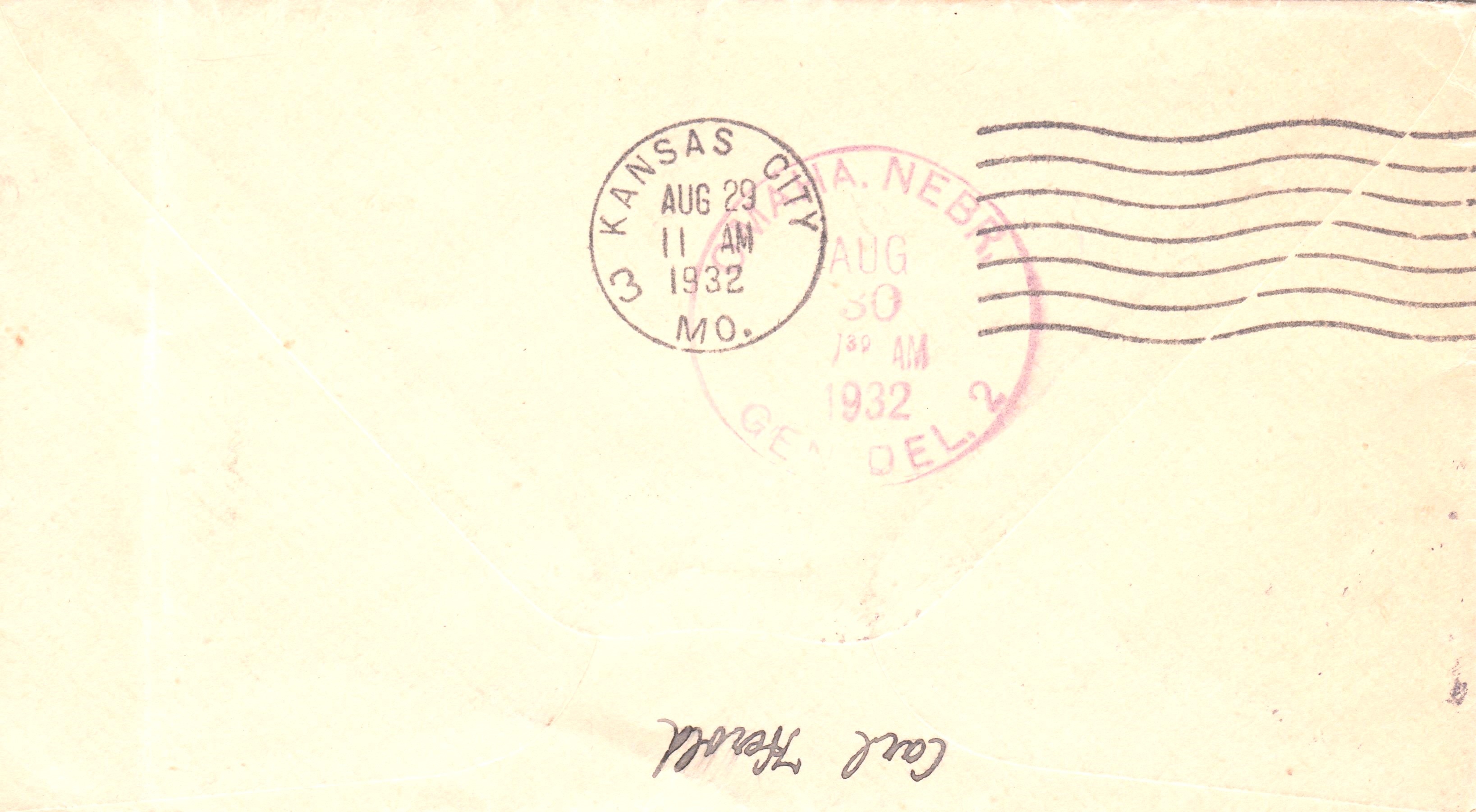 Einzelfrankatur der Wertstufe 5 Pf am 20.08.1932 auf Drucksache ab Köln in die USA, adressiert nach Kansas City, weitergeleitet nach Omaha: