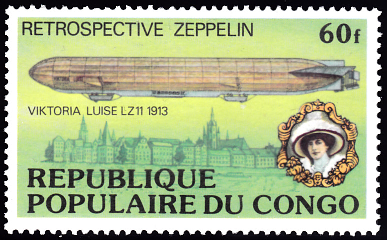 Aus Kongo-Brazzaville kommt diese Marke (MiNr 578) mit dem Luftschiff LZ 11 "Viktoria Luise".
