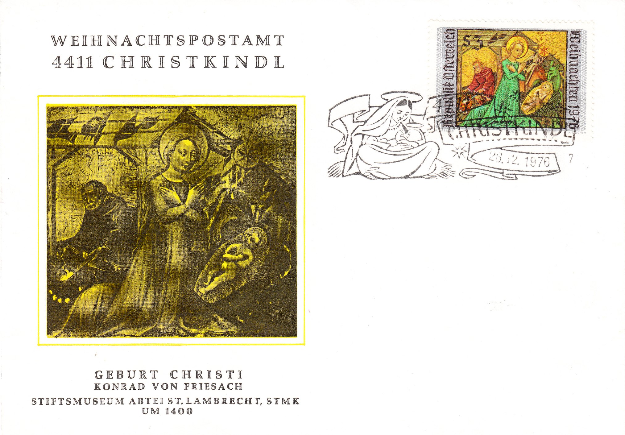 Einen grünen Esel zeigt uns die Österreichische Post auf der Weihnachtsmarke 1976: