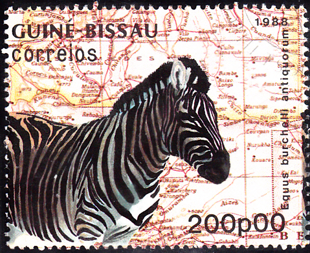 Eine Marke aus Guinea-Bissau (MiNr 985) zeigt ein Burchell-Zebra (Equus burchelli).