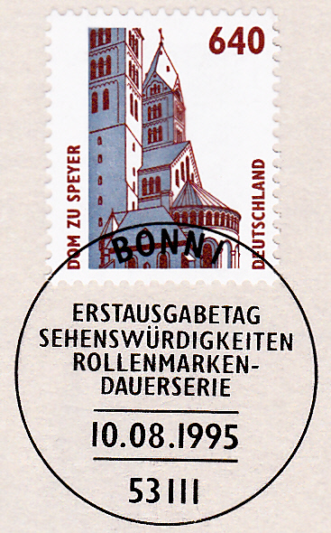 Es folgt eine weitere Marke zu 640Pf (MiNr 1811) mit dem Ersttagsonderstempel Bonn, der für alle Marken der Rollenmarkenserie eingesetzt wurde.