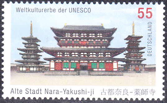 Eine Marke der Deutschen Post (MiNr 2844) zeigt den Tempel Yakushi-ji in Nara.