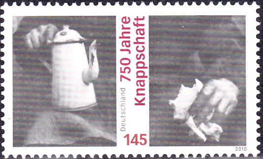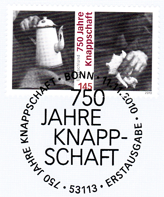 Auf der Sondermarke "750 Jahre Knappschaft" der Deutschen Post (MiNr 2831) ist "Das Frühstück", Photographie von Chargesheimer, eigentlich Carl-Heinz Hargesheimer, abgebildet.