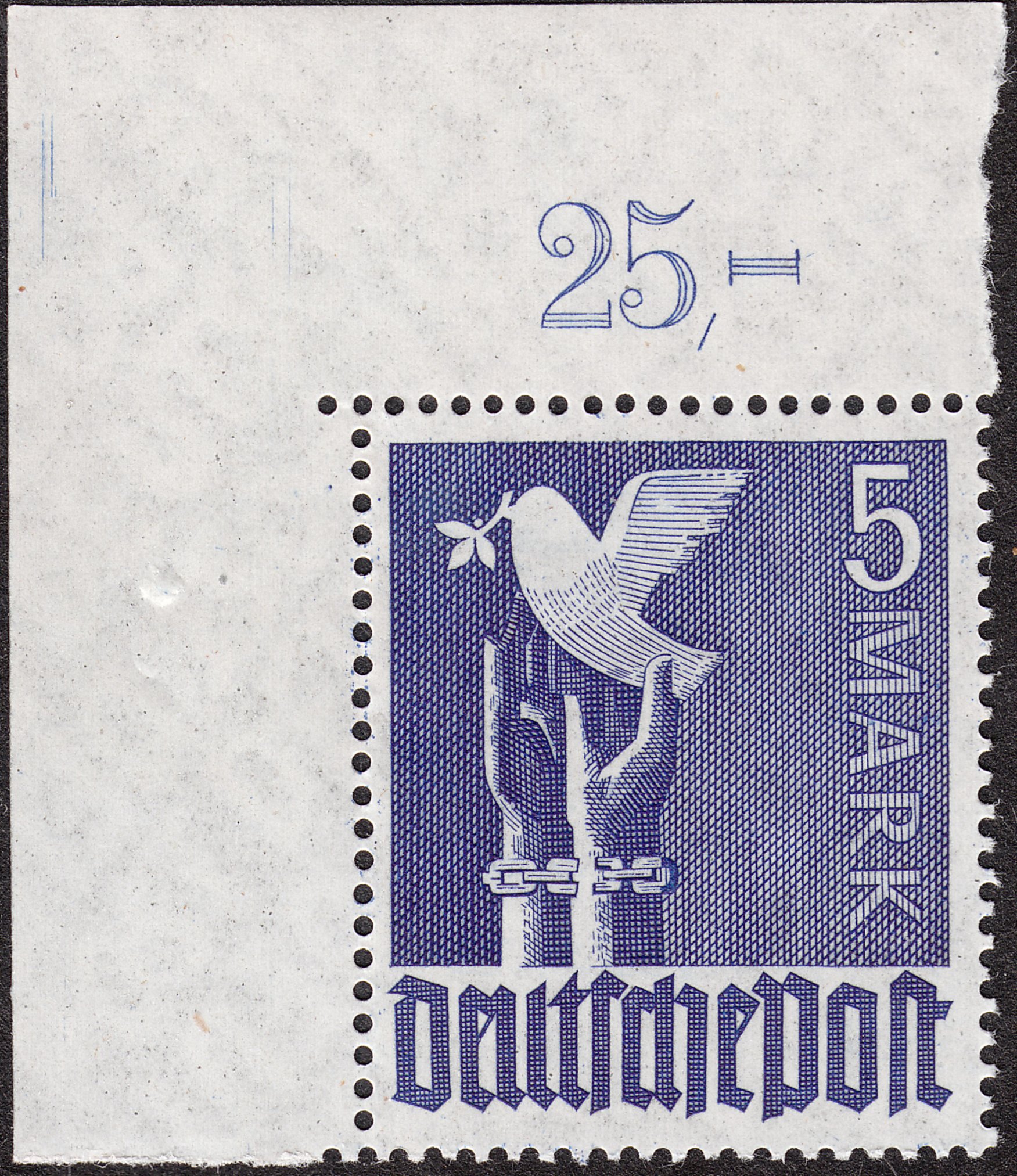 Auch postfrische Exemplare dieses Wertes können es in sich haben, wie dieses heute beim Vereinstauschtag in Aachen erstandene Exemplar zeigt: