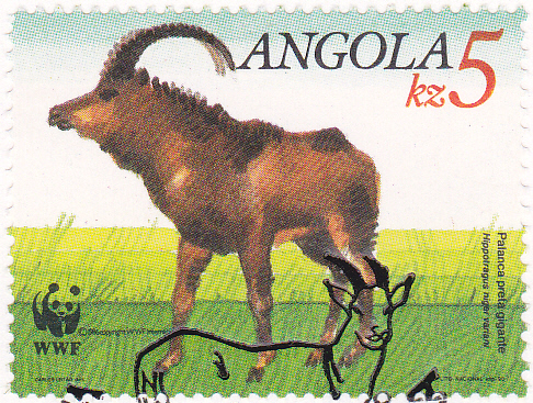 Aus Angola kommt diese Marke (MiNr 799) mit zwei Riesen-Rappenantilopen (Hippotragus niger variani), einer sehr seltenen Unterart der Rappenantilope, die hier schon beschrieben wurde.