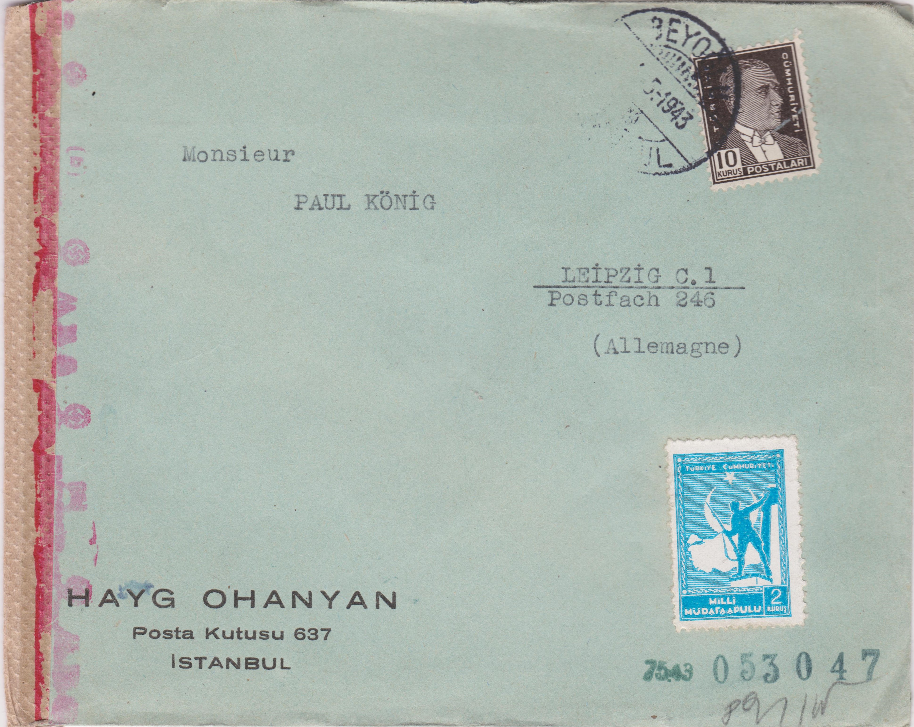 Nach LEIPZIG adressierter Brief, aufgegeben im Mai 1942 in ISTANBUL in der Türkei: