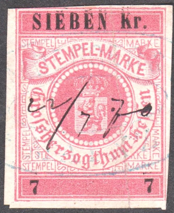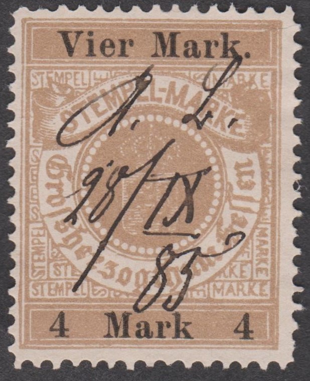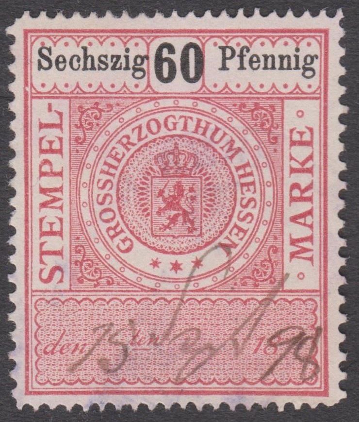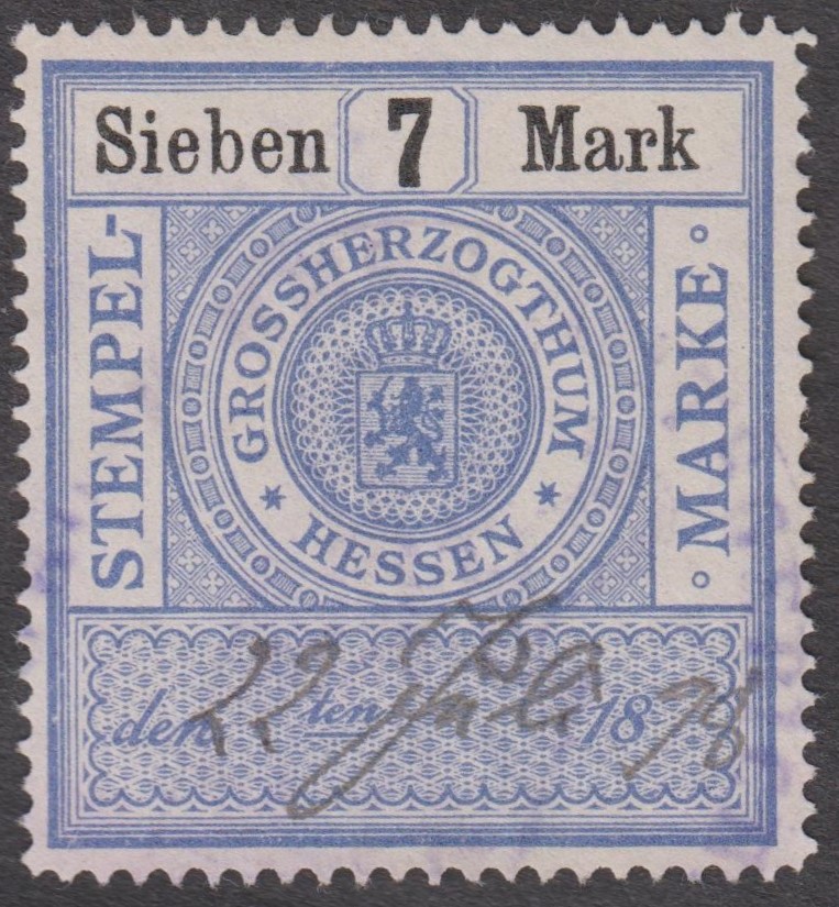 Stempelmarke 5 Goldmark GROSSHERZOGTUM HESSEN mit Aufdruck "VOLKSSTAAT HESSEN":