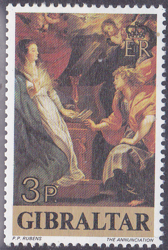Im Gibraltar sind 1977 Weihnachtsmarken mit Gemälden von Peter Paul Rubens erschienen. Die Marke zu 3 Pence (MiNr 367) zeigt das Gemälde "Die Verkündigung" von Peter Paul Rubens.