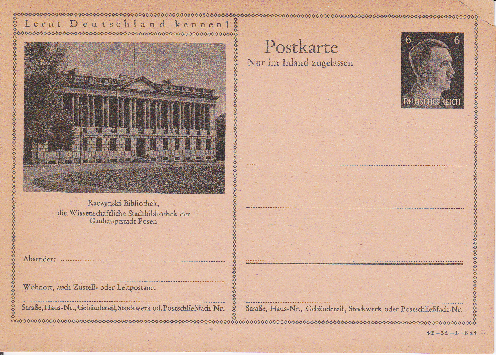 Es folgt eine weitere Karte (Serie 31 Bild 14) mit der Raczyński-Bibliothek in Posen. Es fehlen die bildgleichen Karten (Bild 13 und 14).