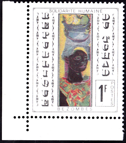 In einer Serie "Solidarität aller Menschen" ist im Tschad diese Marke (MiNr 267) mit Gemälde von Roger Bezombes erschienen.