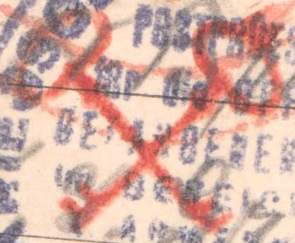 Die Karte durchlief die Prüfstelle in OSNABRÜCK, wo ein Prüfstempel "zwei gekreuzte Schlüssel" abgeschlagen wurde: